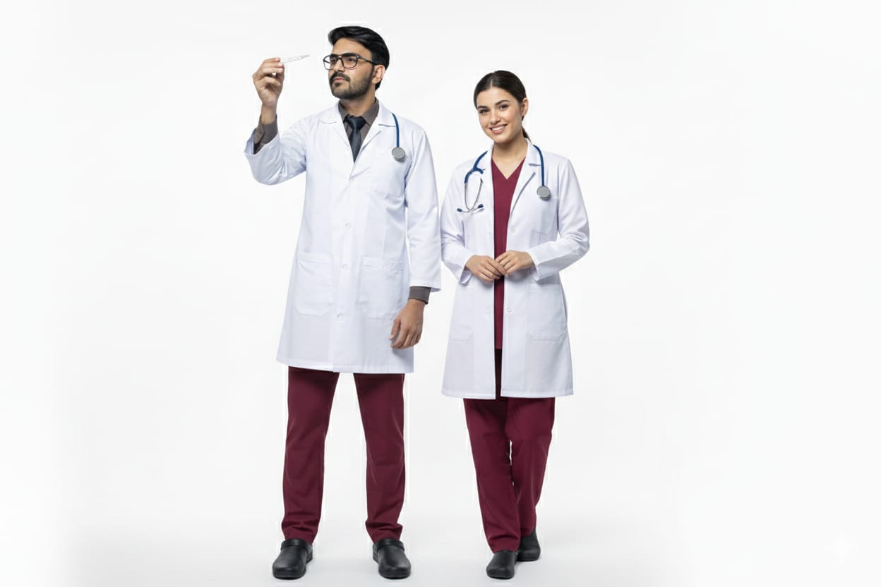 This premium medical scrub is ideal for doctors, nurses, and hospital staff.