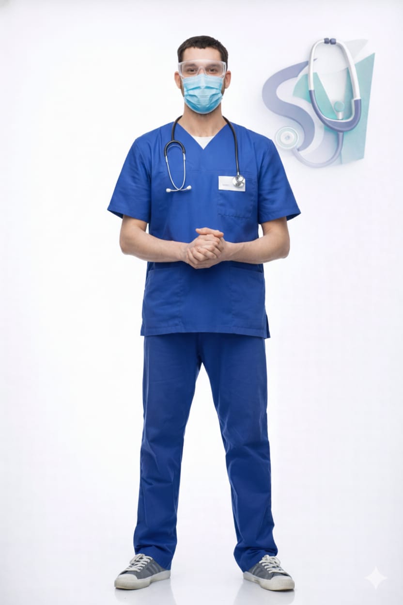 This premium medical scrub is ideal for doctors, nurses, and hospital staff.