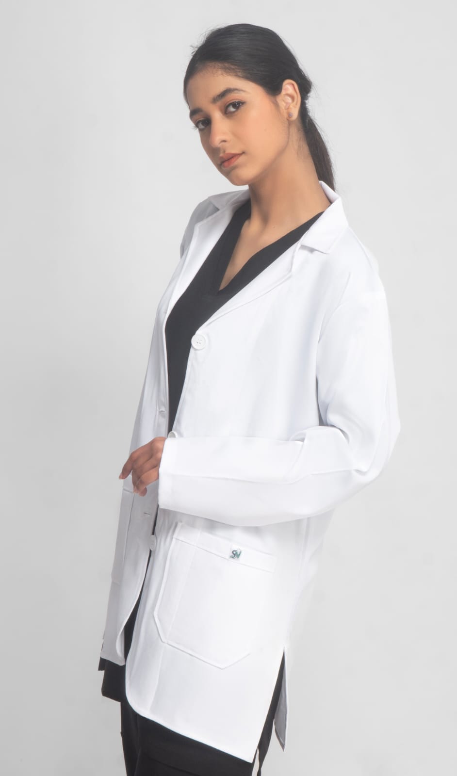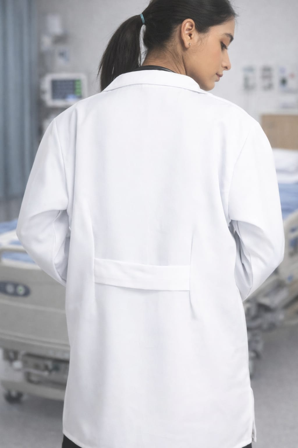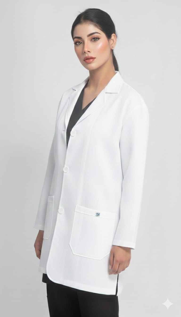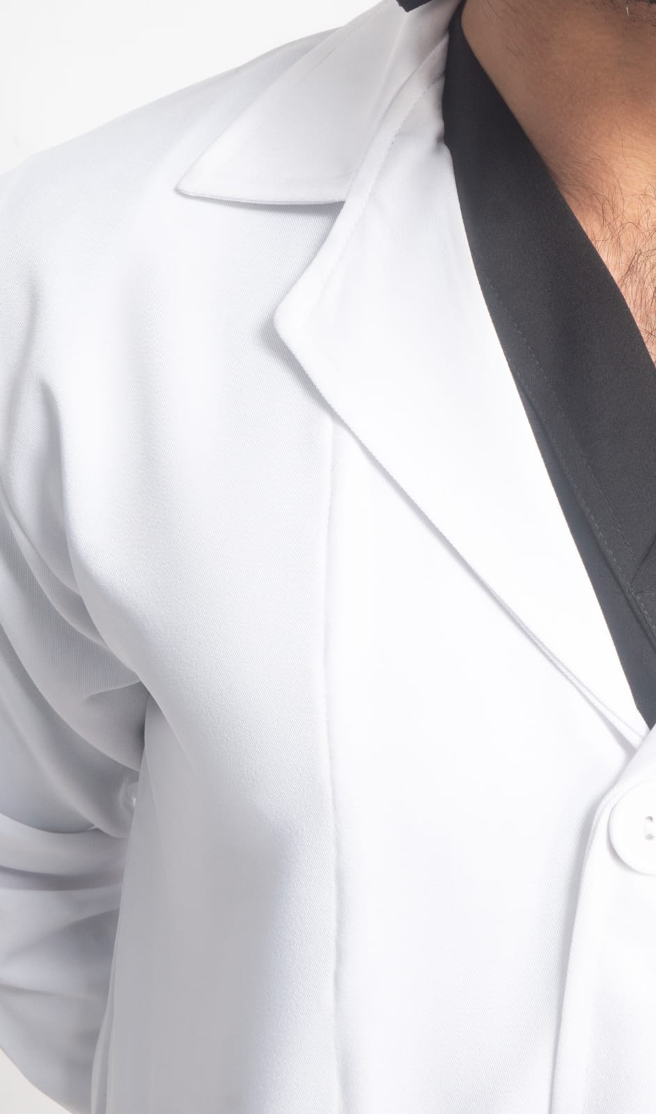 This premium lab coat combines breathable fabric with a modern, structured fit — keeping you comfortable, confident, and presentable throughout the day. Ideal for doctors, nurses, lab technicians, and hospital staff.